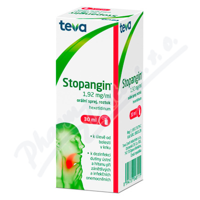 Přípravek Stopangin ve spreji je dezinfekční přípravek s mírným anestetickým (znecitlivujícím) účinkem. Obsahuje léčivou látku hexetidin, která působí proti bakteriím, kvasinkám a plísním.