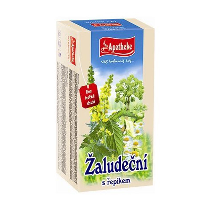 Apotheke Žaludeční čaj je doplněk stravy, který obsahuje řebříček, řepík, anděliku, třezalku, heřmánek a puškvorec.