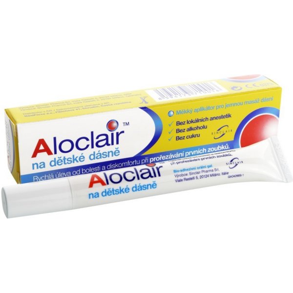 Aplikace přípravku po jídle nebo před spaním podpoří vytvoření filmu a prodlouží dobu úlevy od bolesti. Naneste na postižené místo dostatečné množství přípravku a aplikátorem jemně masírujte dáseň. Aloclair na dětské dásně po aplikaci nepálí a má příjemnou banánovou chuť. Aplikaci opakujte dle potřeby. Po každém použití uzavřete šroubovací víčko aplikátoru. Před každým použitím odstraňte z aplikátoru zbytky přípravku, které by mohly bránit vytlačení gel.