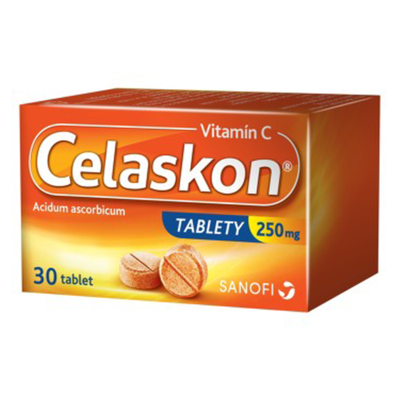 Přípravek Celaskon tablety 250 mg obsahuje 250 mg kyseliny askorbové (